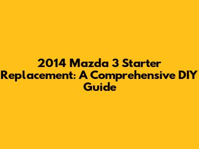 2014 Mazda 3 Starter Replacement: DIY Guide