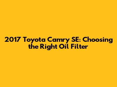 Hey guys! Let's dive into something super important for your trusty 2017 Toyota Camry SE: oil filters. Keeping your engine running smoothly is all about using the right parts and following a good maintenance schedule. Changing your oil and filter regularly is one of the easiest and most effective ways to extend the life of your engine and maintain peak performance. So, let's explore everything you need to know about choosing the best oil filter for your Camry SE. We'll cover why it matters, what to look for, and some top recommendations to keep your ride purring like a kitten.