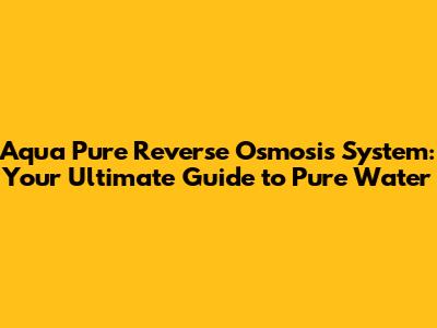 Aqua Pure Reverse Osmosis: Ultimate Water Purity Guide