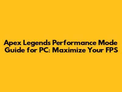 Boost Apex Legends FPS: Performance Mode Guide For PC