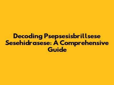 Decoding Psepsesisbrillsese Sesehidrasese: A Comprehensive Guide