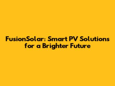 FusionSolar: Smart PV Solutions For A Brighter Future