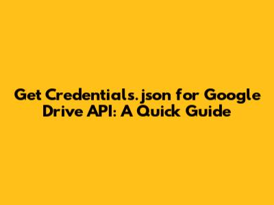 Get Credentials.json For Google Drive API: A Quick Guide