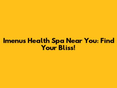Imenu's Health Spa Near You: Find Your Bliss!