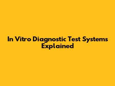 In Vitro Diagnostic Test Systems Explained