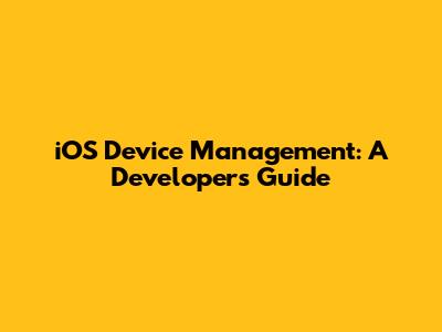IOS Device Management: A Developer's Guide