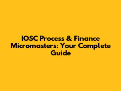 IOSC Process & Finance Micromasters: Your Complete Guide