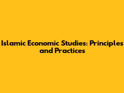 Islamic Economic Studies: Principles And Practices
