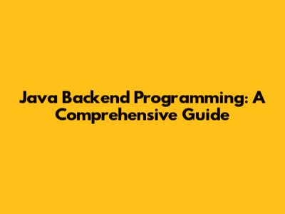 Java Backend Programming: A Comprehensive Guide