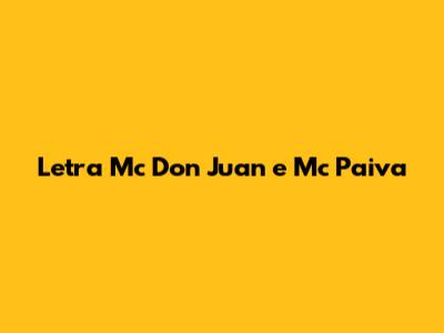 Letra Mc Don Juan E Mc Paiva