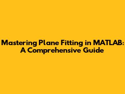 Mastering Plane Fitting In MATLAB: A Comprehensive Guide