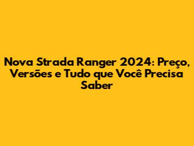 Nova Strada Ranger 2024: Preço, Versões E Tudo Que Você Precisa Saber