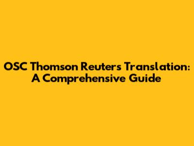 OSC Thomson Reuters Translation: A Comprehensive Guide