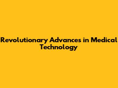 Revolutionary Advances In Medical Technology