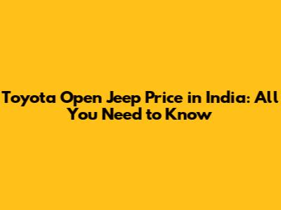 Toyota Open Jeep Price In India: All You Need To Know