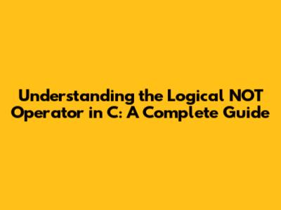 Understanding The Logical NOT Operator In C: A Complete Guide