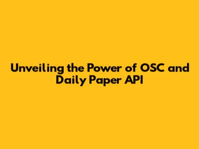 Unveiling The Power Of OSC And Daily Paper API