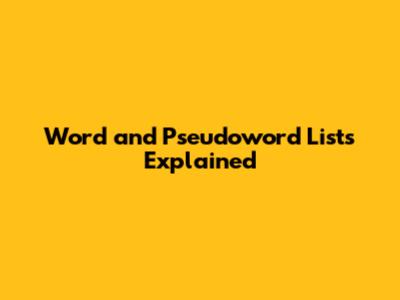 Word And Pseudoword Lists Explained