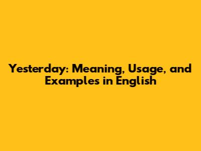 Yesterday: Meaning, Usage, And Examples In English